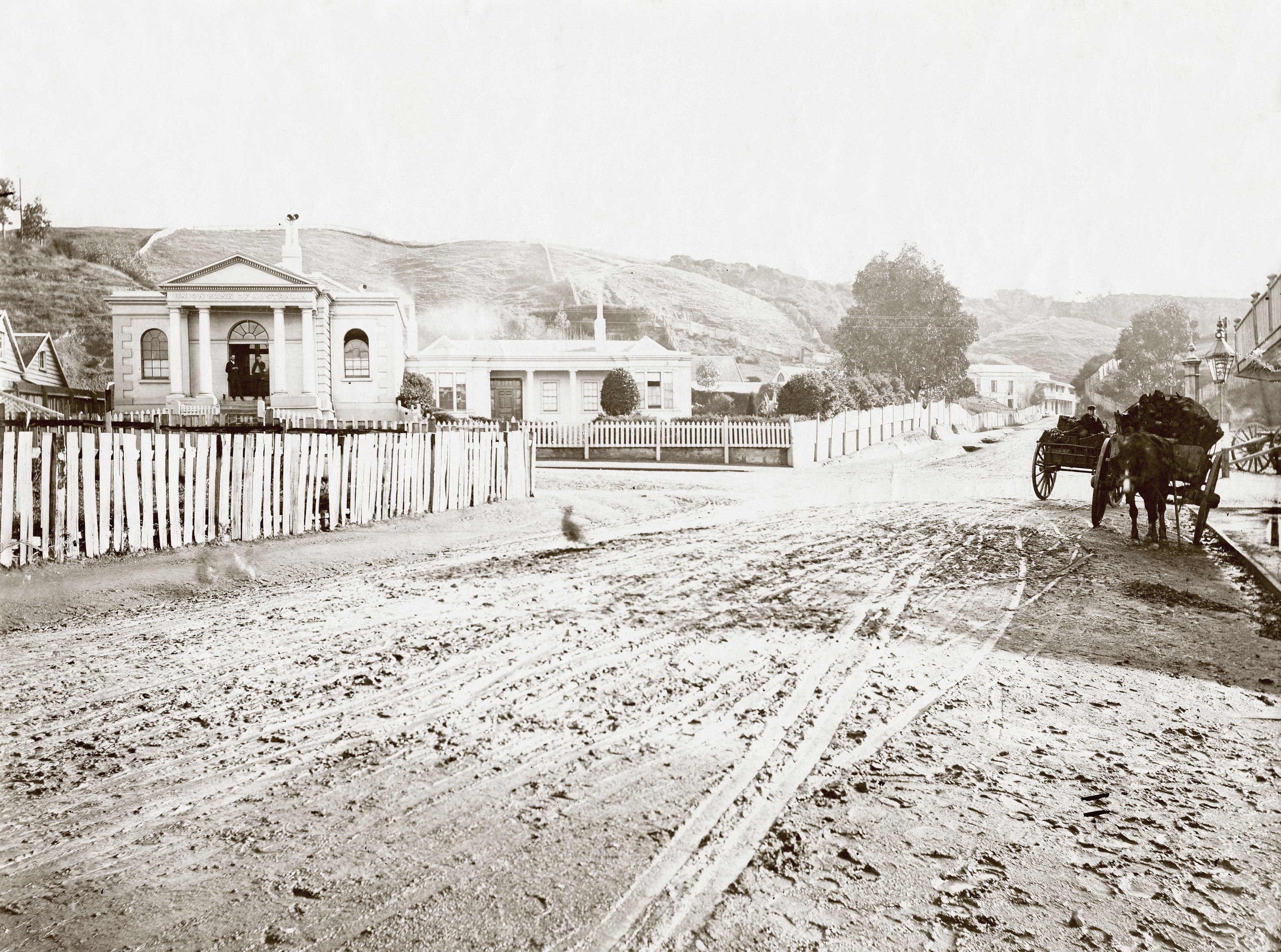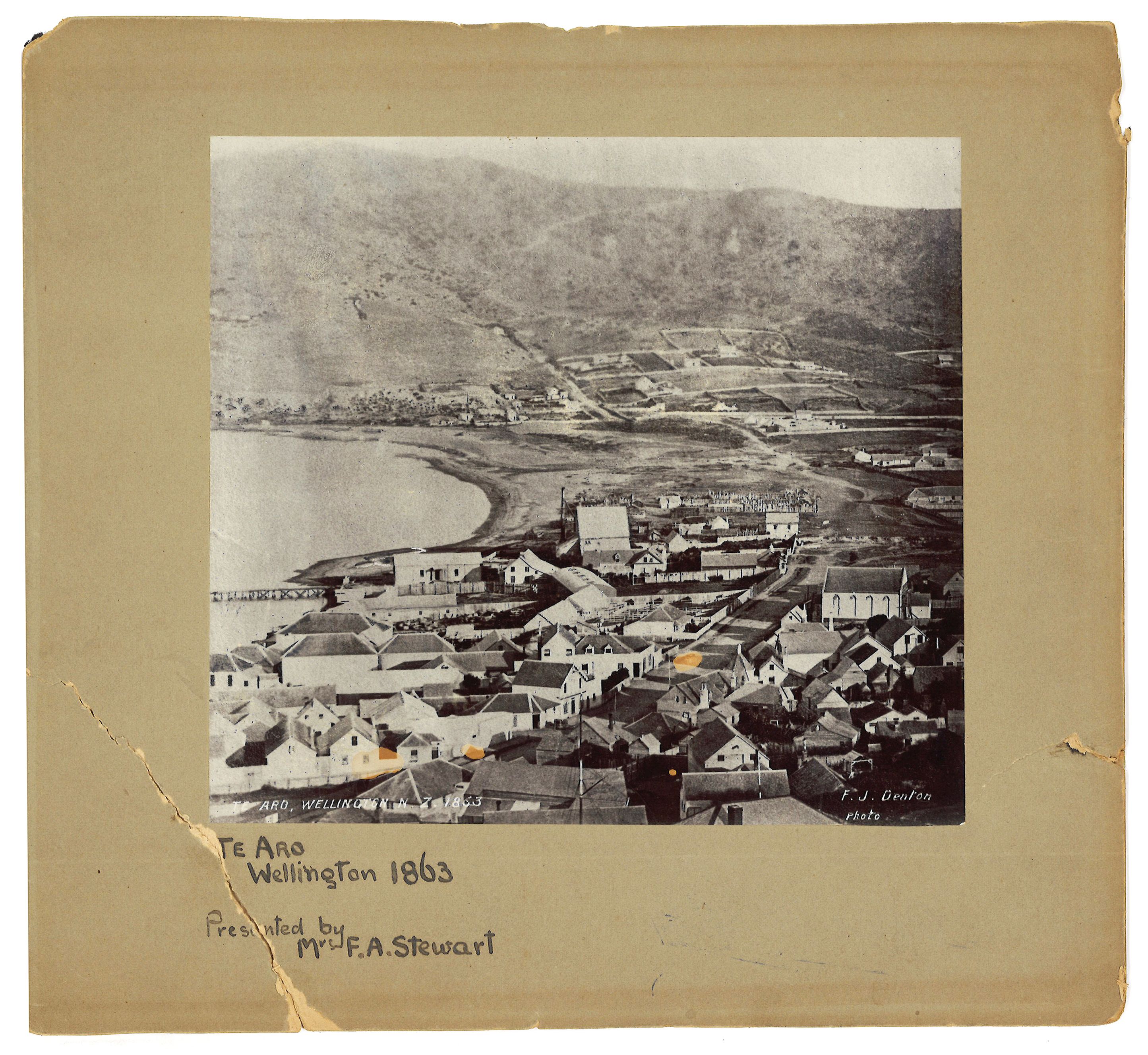 A small photograph mounted to card is one of the earliest known images taken of Manners Street and the wider Te Aro area.