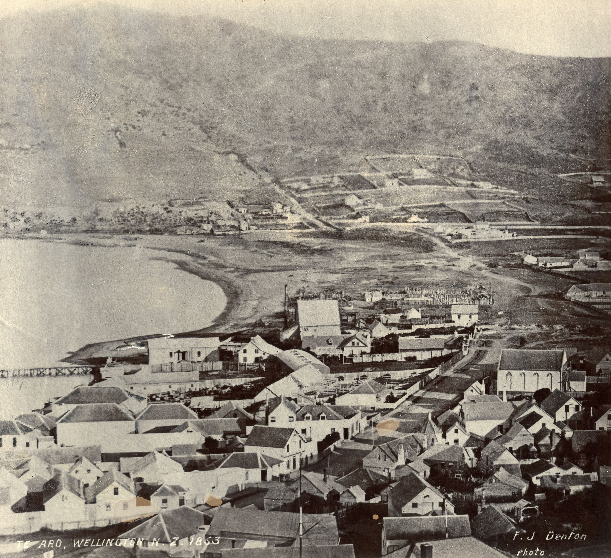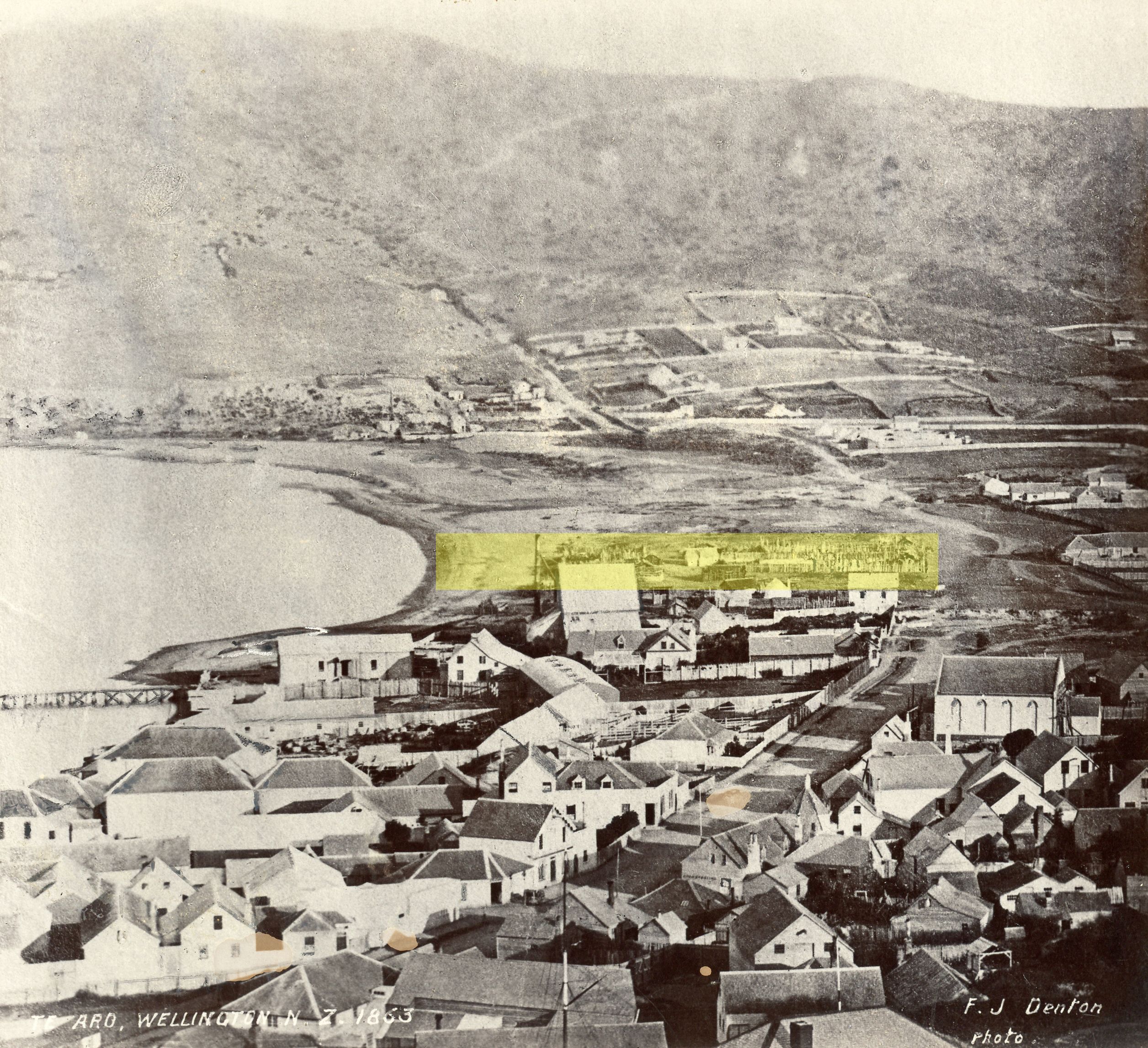 The photograph of Te Aro has annotations made in a felt-tip pen that include the date 1863.